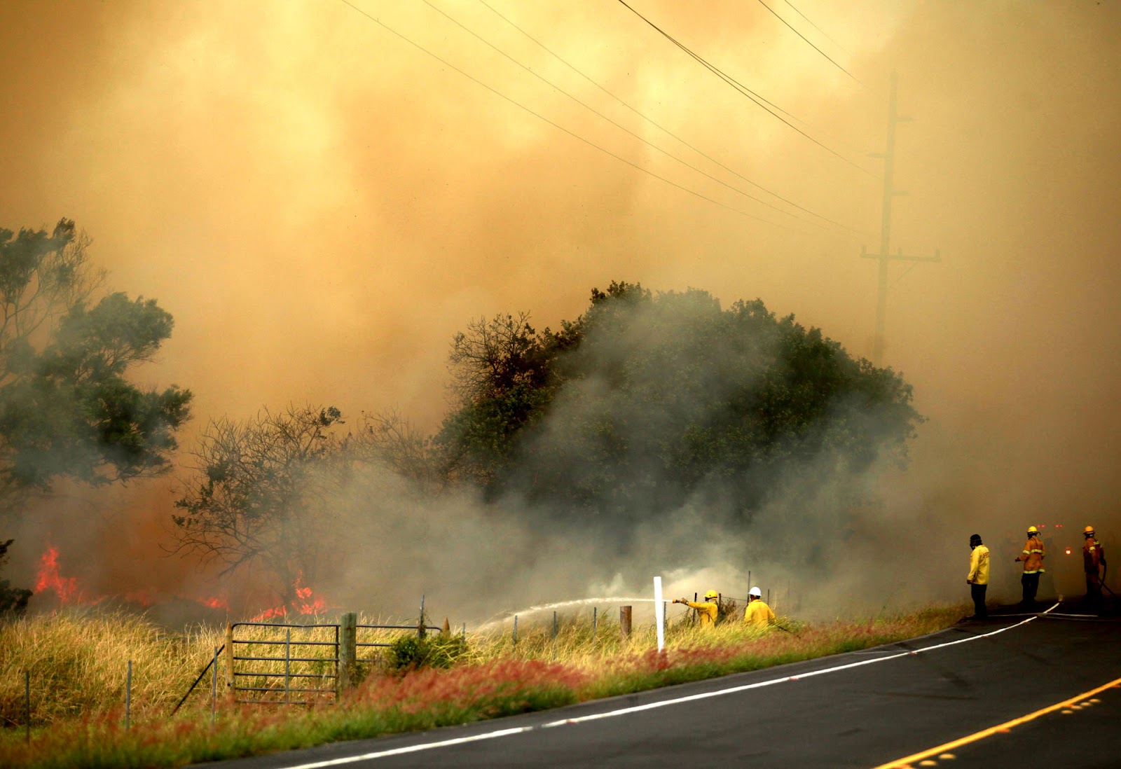 This first shot is from a road block on the main highway on the Big Island. The fire was approaching the road so they redirected everyone to a bypass road. After the traffic cleared, the reporter and I got permission to move closer to the flames and I was able to make the following photos.